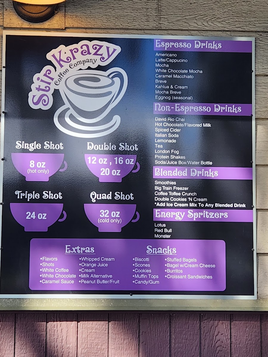 Stir Krazy Coffee Menu